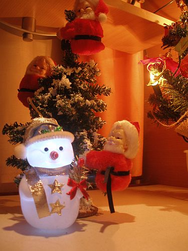 Nach dem Schweinekrustenbraten mit Klößen machen wir Bescherung. Wir wollten uns ja nichts schenken, aber ich hab gottseidank den Spiralschlauch, den Peter sowieso bekommen hätte, weihnachtlich eingepackt, denn sonst hätte ich tatsächlich ganz ohne Geschenk für ihn dagestanden, denn er hat sich nicht an die Abmachung gehalten und mich total überrascht. Dabei hatte ich mich schon Anfang Dezember gewundert, dass sein "Taschengeld" all war.