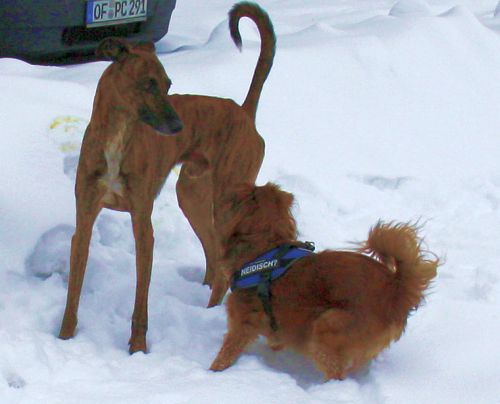 Auch unser Giftzwerg leidet. Das ist nix, denn im Feld ist der Schnee noch tiefer. Oder heißt das höher?