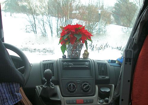 Eigentlich wollten wir schon am 17.12. wegfahren, aber pünktlich zur geplanten Abfahrtszeit kam der große Schnee. Also hab ich wieder alles in die Schränke gepackt und Peter ging nochmal 3 Tage arbeiten. Das wollte er ursprünglich von Bad Soden aus mit dem PKW machen.