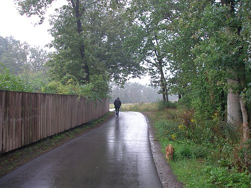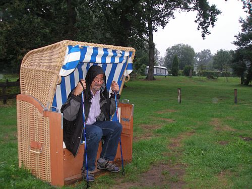 Es hat die ganze Nacht mal stärker und mal schwächer geregnet. Dementsprechend früh haben wir ausgeschlafen, weil wir weiter wollen. Regentage sind Fahrtage - hab ich irgendwo gelesen. Unser Nachbar macht sich auch startklar und bei einem kurzen Gespräch erfahren wir wo die Heide blüht. Er schenkt uns sein Prospekt, damit wir die Heiden auch finden. Dann gehts los.