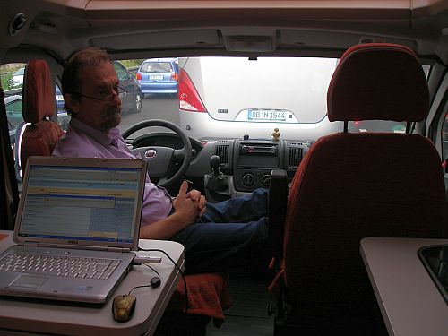 Die ganze Nacht hats leise vor sich hin genieselt und gegen 8:00 haben wir ausgeschlafen, weil 200 Nachbarn gefühlte 500 Womotüren und Klappen zuschlagen und lauthals ein fröhliches Guten Morgen übern Stellplatz brüllen. Mühsam versuch ich wieder einzuschlafen, immerhin ists unser erster Urlaubstag und ich hab mir den Schlaf verdient. Aber es wird nix. Um 10:00 geb ichs auf und geh erst mal mit Bruno eine Runde. Der Platz hat sich inzwischen tatsächlich geleert und Ruhe ist.