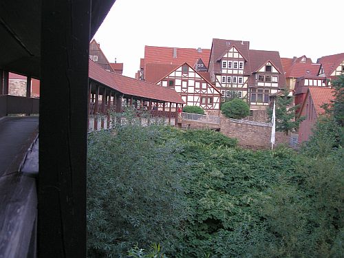 Nach dem Abendessen wollen wir noch ein wenig ins Städtchen und Häuser angucken. Wir waren schon mal hier und waren von der Altstadt begeistert. Leider schaffts Peter nur bis zur Brücke, dann muss er umdrehen. Blöder Rücken.
