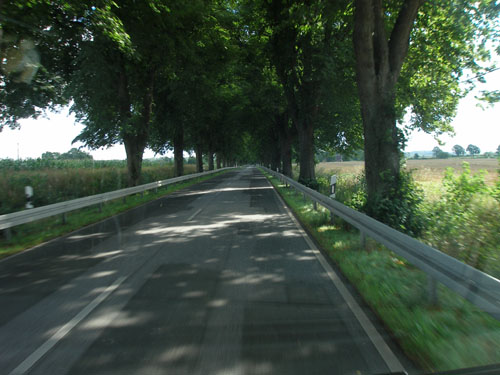 Durch lange Alleen und flaches Ackerland gehts heute recht flott voran und
