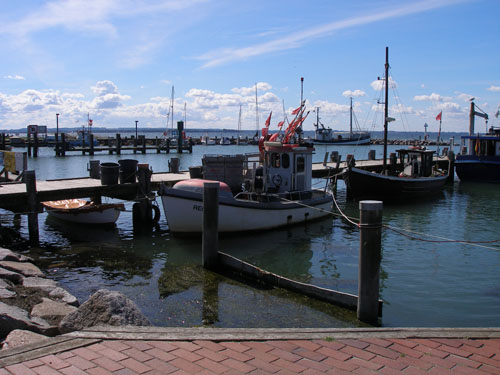 Erst mal ein Erkundungsspaziergang zum Hafen. Dort kaufen wir auch gleich ein Fischbrötchen und ein Stück geräucherten Heilbutt. Nach dieser Stärkung müssen wir eine Pause in der Sonne vorm Womo einlegen. Und während Peter Mittagsschlaf hält, mach ich mich nochmal auf den Weg zum Hafen.