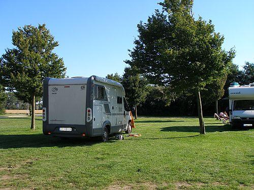 Stellplatzgebühr: 11 € + 1 € Strom + 3 € Dusche