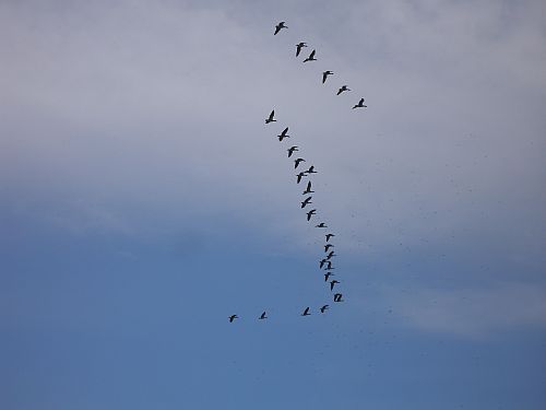 und über uns fliegen ständig neue Schnatteriche vorbei. Diese zwei hier schnattern nicht, sie sind ganz leise.....