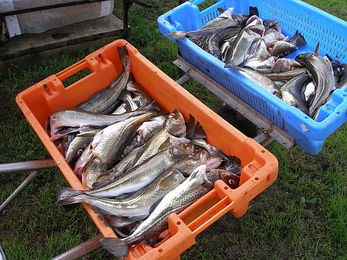 Der Himmel ist bewölkt und wir packen. Bier ist eh all, und wir brauchen einen Getränkemarkt. Vorher guck ich nochmal bei den Fischern vorbei, aber ich habe Pech, sie räuchern nicht. Und diese großen Fische passen nicht in meine Pfanne.