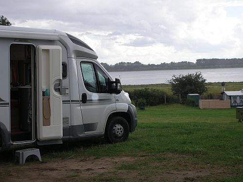 Leider suchen wir vergebens und fahren gefrustet, aber mit 2 vollen Bierkästen und vollem Kühlschrank zurück. Auf dem Campingplatz auf dem Boiensdorfer Werder checken wir ein und haben einen Platz mit klasse Sicht aufs Wasser.