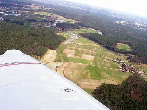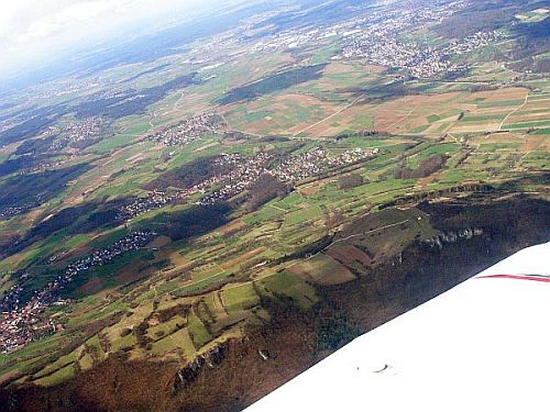 Flug über den heiligen Berg der Franken, das Walberla, in der Nähe von Forchheim.