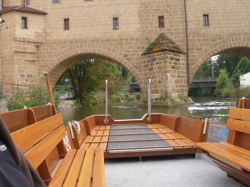 Nach einer Ruhepause auf dem Platz entschließen wir uns zu einer Plättenfahrt auf der Vils. Plätten sind flache Kähne, auf denen im Mittelalter das Erz auf Naab und Vils nach Regensburg transportiert wurde. Dort wurde es gegen Salz aus Österreich getauscht und Amberg wurde ziemlich reich und war lange Zeit Hauptstadt der Oberpfalz. Deshalb auch die riesigen alten Bauten, denn heute ist das Städtchen wirtschaftlich eher unbedeutend.