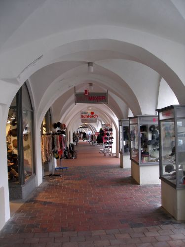 Anschließend gehts auch hier schnell Altstadt angucken. Praktischerweise ist die linke Straßenhälfte überdacht, sodass wir garnicht nass werden.