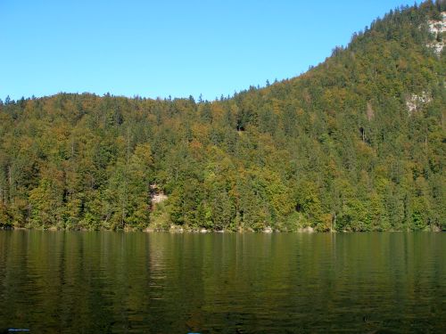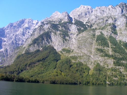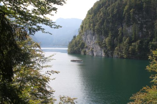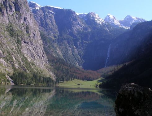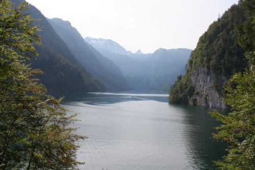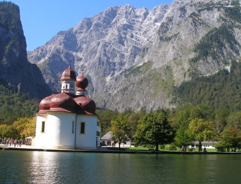 Nun sehen wir die Familie Watzmann, und gleich danach St. Bartholomä. Jetzt dauerts nur noch ein kleines Viertelstündchen, bis wir an der Saletalm rausgelassen werden.