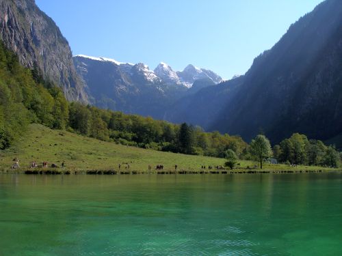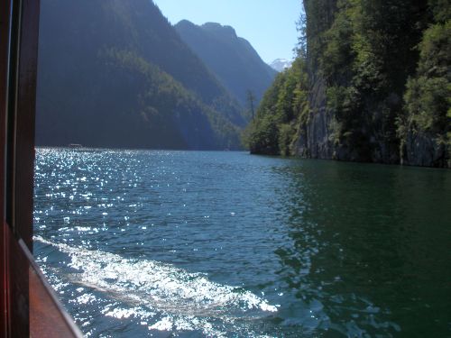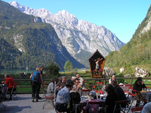 Heute fahren wir zur Saletalm, am Ende des Königssees. Vor 2 Jahren konnten die Schiffe diese Station nicht anfahren, weil an Ostern noch Schnee lag. Wir sind natürlich wieder mal ein wenig zu spät und es herrscht Hochbetrieb bei den Schiffchen. 1 Stunde müssen wir warten, bis wir mitkommen.