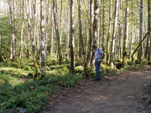 Stattdessen mache ich mit Bruno eine Wanderung zum gestern vom Boot aus gesehenen Aussichtspunkt Malerwinkel am Knick des Königssees.
