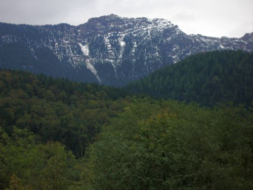 Die Wolken haben sich inzwischen etwas verzogen, und man sieht deutlich, wo die Schneefallgrenze ist. Mit dem Kehlsteinhaus wirds wohl vorerst nichts, denn bei diesen Verhältnissen fahren die Busse nicht.