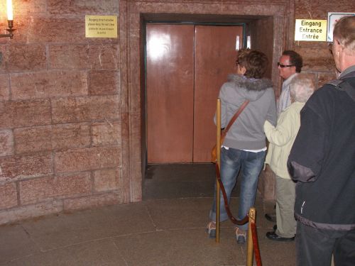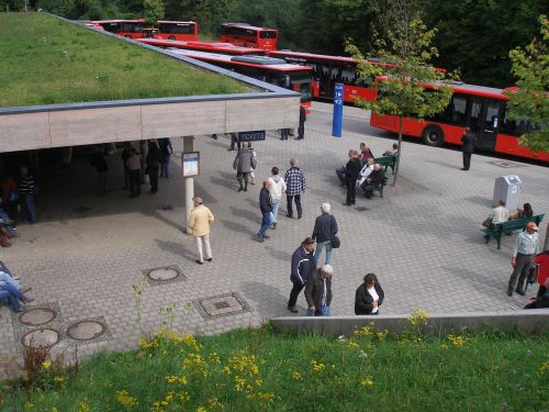 Inzwischen müssen alle Ankommenden warten, denn der Aufzug im Kehlsteinhaus ist defekt und die Busse fahren erst los, wenn der Aufzug wieder geht.
