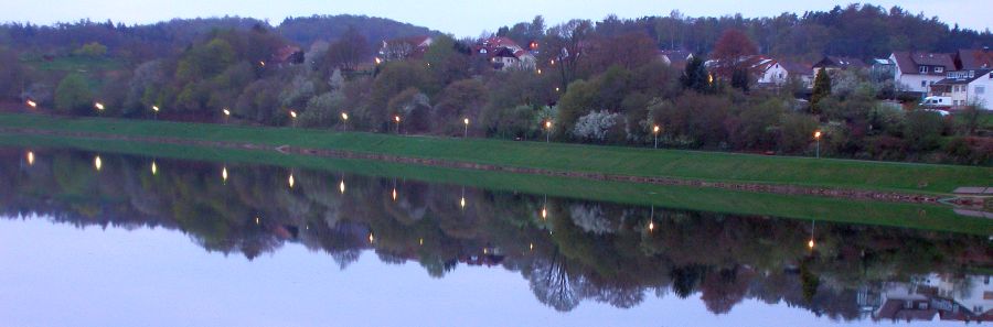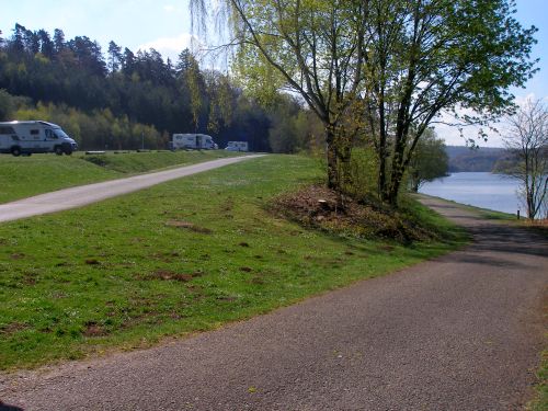 Jedenfalls sind wir gut in Frankenberg gelandet und nun gabs Frikadellen und Bratkartoffeln. Zwischendurch steckte ein Riesenschnauzer seine Riesenschnauze zu uns rein, und Peter konnte Bruno gerade noch daran hindern, ihn zu zerfleischen. Naja, ganz so schlimm wars nicht, denn die Fliegentür war dazwischen. Und eigentlich ging es mir nur um die teuren Plissees. Nach dem Essen hat sich Peter wieder erholt und es wäre Blödsinn, hier zu bleiben, denn bis zum Twistesee sinds nur noch 50 km und dann könnten wir morgen schon am Ziel aufwachen. Also weiter. Und bei Dunkelheit sind wir nun endlich hier angekommen. Wir haben Blick auf den See, Bruno hat vor der Tür eine Wiese mit lecker Hasenköttel, das Bier ist kalt, alles ist gut. Der Urlaub kann beginnen.