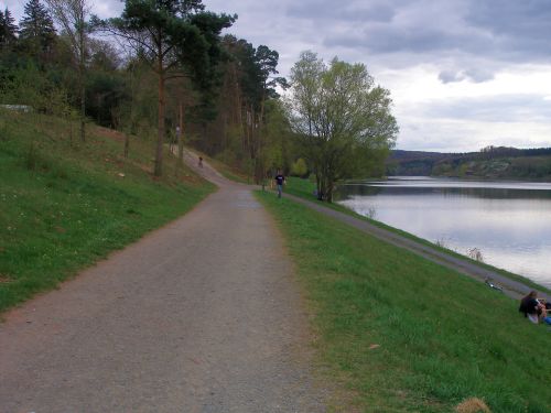 Der Weg auf der anderen Seite ist nun ein Klacks. Es geht ebenerdig an der Wasserskianlage und dem Schwimmbad vorbei,