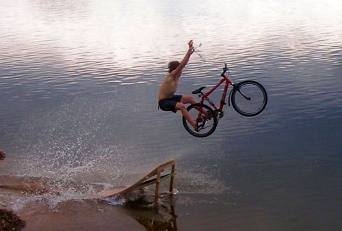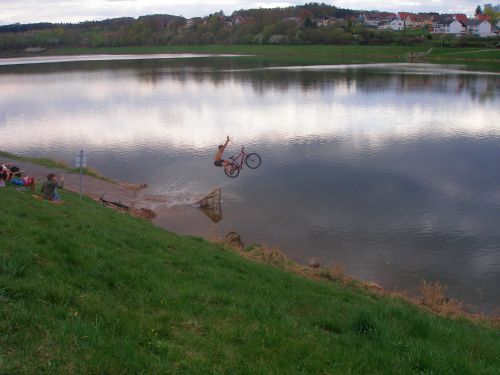 das Fahrrad fliegt, der Fahrer auch, und ich krieg schon Eisbeine beim Zugucken.