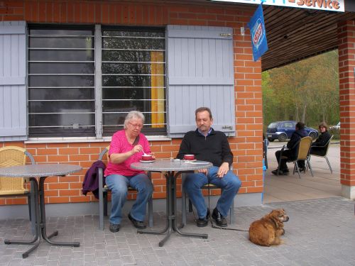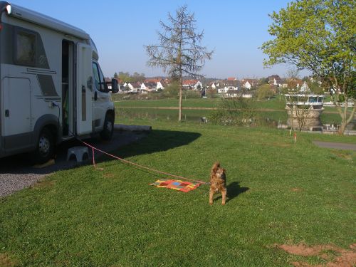 Bruno trifft unterwegs sein Gegenstück in blond, und dann genießen wir die Sonne, bis Peter bettreif ist. Ich sitze noch ein wenig draußen und dann kommt ein Dethleffs an und ich höre "hallo Tipsel". Huch man kennt mich. Es ist Steuertantegabi aus dem Wohnmobilforum. Kurzer Plausch und wir verabreden uns zum Abendessen in der Wetterburg.