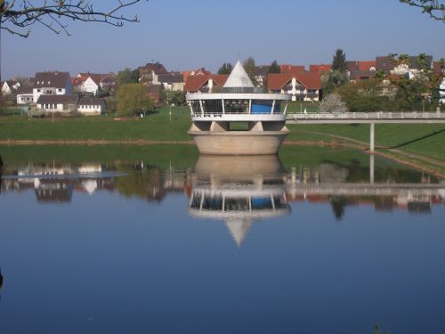 und dann sehen wir schon das Cafe im See.