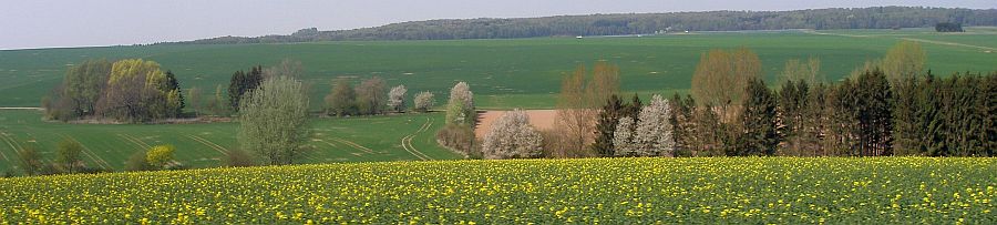 Besonders die vielen verschiedenen Arten von Grün, dazwischen immer wieder blühende Bäume und Weißdorn in Mengen, und seit gestern blüht auch der Raps.