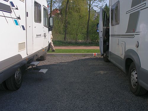 Nun kommt der Top-Platz Holzminden. Oh je. Rappelvoll und schlimm wie ein Dauercamperplatz. Sowas brauchen wir nicht.