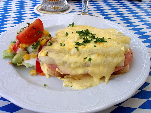 und ich einen superleckeren Spargeltoast auf einem normalen Teller.