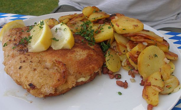 Peter hat ein 5 cm dickes Cordon Bleu und ca. 1 Pfund Bratkartoffeln