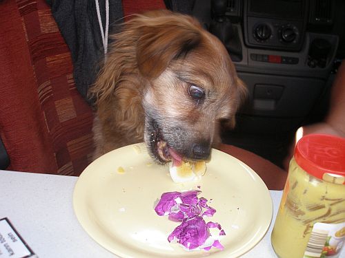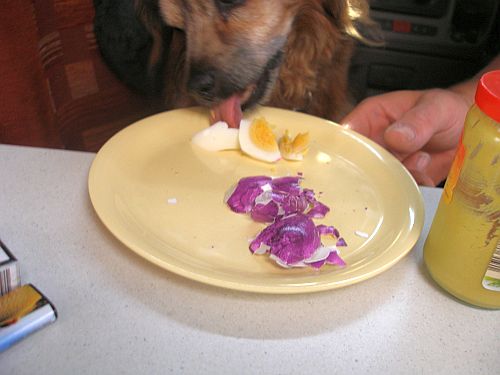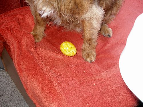 Anschließend bekommt er sein Osterei geschält und auf dem Teller serviert.