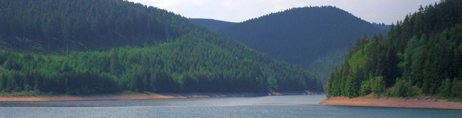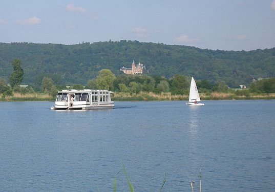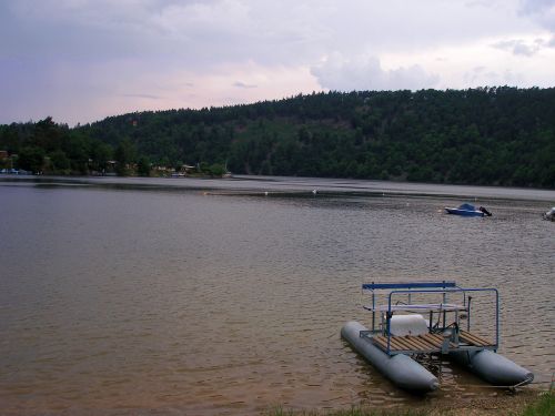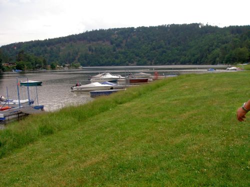 Der Stausee ist hier nicht besonders breit, rundherum liegen Boote, überall stehen Wochenendhäuser im Wald und es ist eine reine Urlaubsregion. Dies ist aber wohl so an allen Stauseen, die lediglich zur Regulierung des Wasserstandes angelegt wurden.
