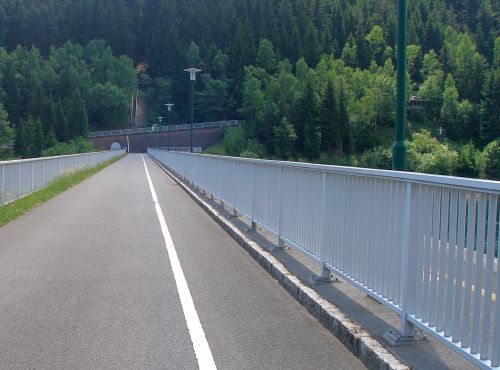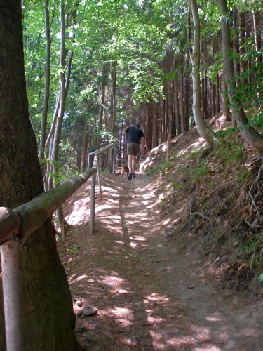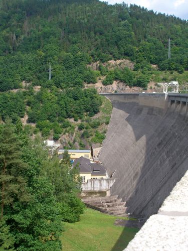 dann gings recht steil bergauf zur Staumauer. Da kommt man ganz schön ins Schwitzen, auch wenns schattig ist.