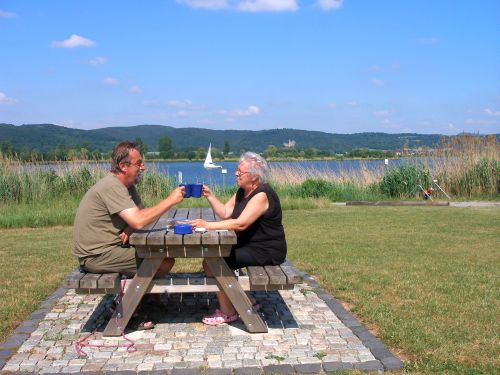 Jetzt hab ich natürlich keine Lust mehr zum Kochen und wir gehen ins Bistro auf dem Campingplatz. Peter muss 2 Beilagensalate essen, denn hier denkt niemand an EHEC und es gibt Rohkost. Das ist nix für mich. Aber Schnitzel und Pommes schmecken, hinterher nen Willi, die Sonne scheint immernoch..... Urlaub.