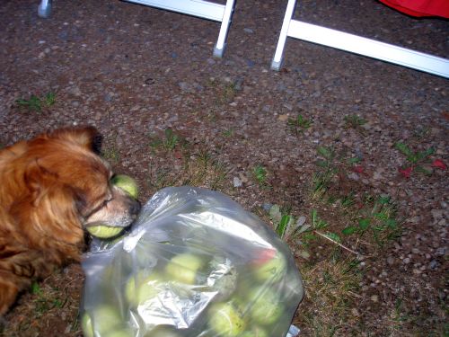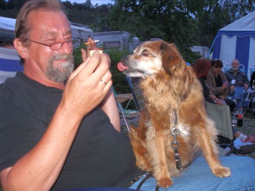 Uschi bringt Bruno Bällchen mit, und der Rüpel reißt sofort die Tüte auf, so freut er sich.