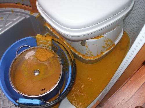 Wiebkes Karotten-Ingwer-Süppchen hat eine Vollbremsung beinahe nicht überstanden, und zu EHEC-Zeiten kommen da die schlimmsten Vermutungen auf, wenn man die Brühe ums Klo rum anschaut.