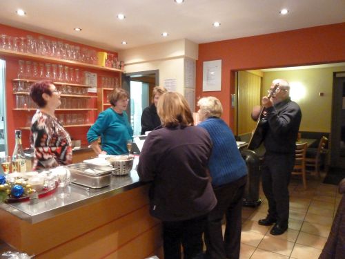 Den Abend verbringen wir im Lokal, das uns nun alleine gehört, nachdem es für die nächsten 2 Tage zur geschlossenen Gesellschaft erklärt wurde. Und als Manni gegen 1:00 seinen Rumtopf anschleppt, holen wir auch Konrad - der sich gerade bettfertig gemacht hat - wieder raus.