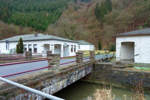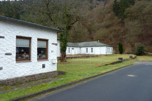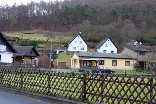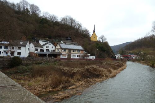 Heute wollen wir uns Ahrbrück ansehen, und gleich nach dem Frühstück, so gegen 13:00, marschieren wir los. Vorbei an der Grundschule und der ehemaligen Kristallschleiferei,