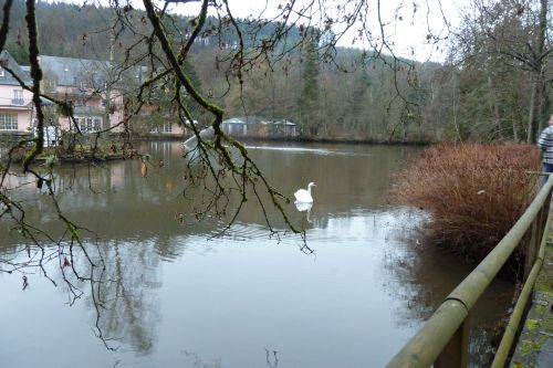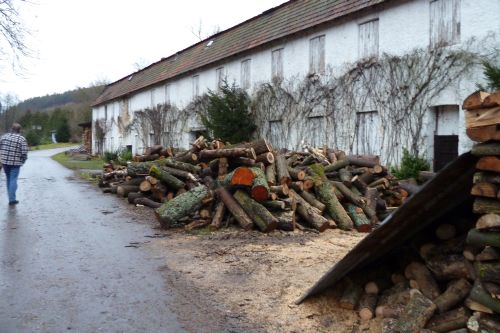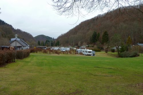 Und wieder schlafen wir lange. Nach dem Frühstück hat keiner richtig Lust, etwas zu unternehmen. Also nähe ich meinen endlich fertig gestrickten Pullover zusammen, dann raffen wir uns auf und gehen die andere Seite von Ahrbrück anschauen. Aber auch hier gefällt es uns garnicht. Einige Grundstücke sind sehr vernachlässigt und die alte Wellpappfabrik trägt auch nicht zur Verschönerung des Ortes bei. Trostlos schauts aus bei dem trüben Wetter. Ich hab zwar den Fotoapparat dabei, aber es gibt nix zu knipsen. Schade, dass der Charakter der Ortschaft scheinbar nur von der alten Fabrik geprägt ist, denn die Landschaft ist traumhaft und einige Ausflugslokale oder wenigstens ein Restaurant würden den Ort attraktiver machen.