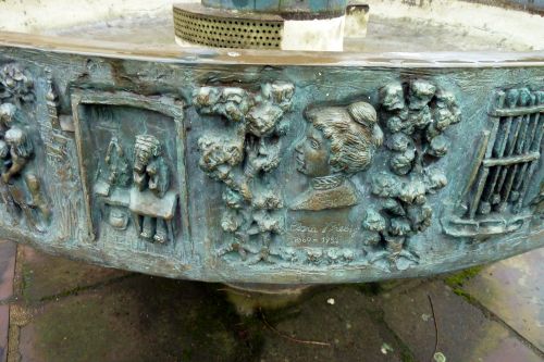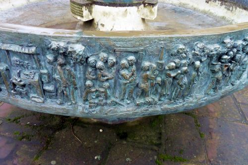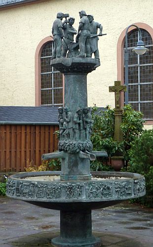 Endlich frei besuchen wir erst mal den bekannten Brunnen in Eisenschmitt, der die Entstehung des Dorfes zeigt und rundherum sieht man Motive aus dem Roman "Das Weiberdorf" von Clara Viebig.