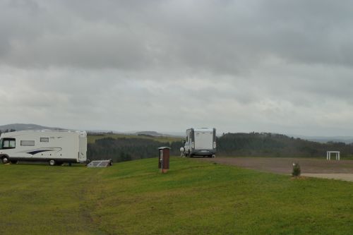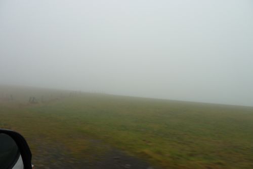 Aber während wir ein wenig den Platz anschauen, frieren uns Füße und Hände ab, denn außer der Eiseskälte weht hier ein ordentlicher Wind. Nee, das ist nix für uns Warmduscher, und wir fahren weiter durch Nebel, Wälder und Berge.