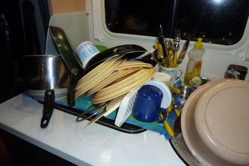 Inzwischen wird der Sturm immer schlimmer und wir bekommens mit der Angst zu tun. So gewackelt hat unser Womo noch nie. Wir überlegen, wo wir hinfahren sollen, aber eigentlich nützts ja garnix, denn durch den Wald fahren wir keinesfalls. Also spül ich mal mein Geschirr, damit wenigstens kein dreckiges Geschirr rumfliegt, wenn wir abheben.