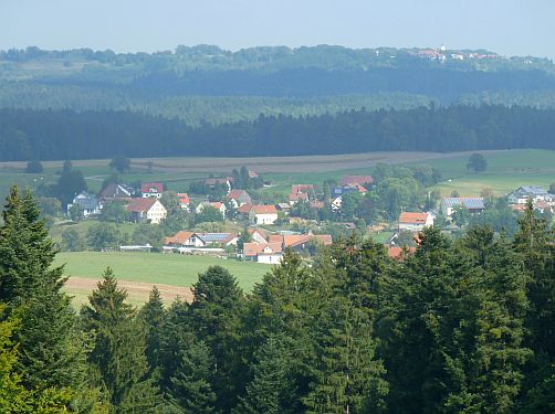 Und dann machen wir uns auf zum Verwandtenbesuch nach Rattenharz. Ohje, hier gehts wieder ne schmale Straße in Serpentinen hoch und immer höher. Sie scheint ans Ende der Welt gezogen zu sein. Wir konnten uns nicht vorstellen, dass jemand aus der Stadt hier in diese Einsamkeit zieht. Aber die Aussicht von der Terrasse aus ist traumhaft. Und paar Schritte weiter sehen wir auch unser Ziel für morgen, die Kaiserberge, die aber aus dieser Richtung gesehen garnicht kegelförmig sind.