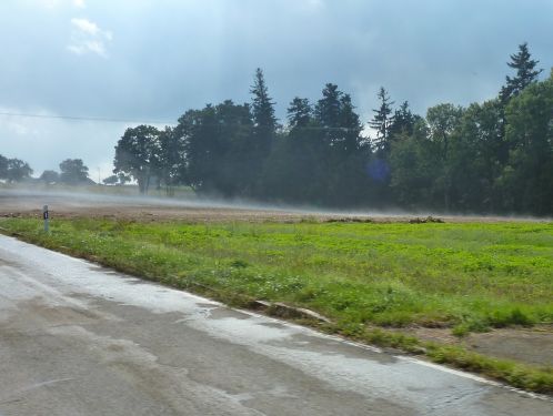 und oben verdampft auf den Feldern der Regen der letzten Nacht in der Sonne.