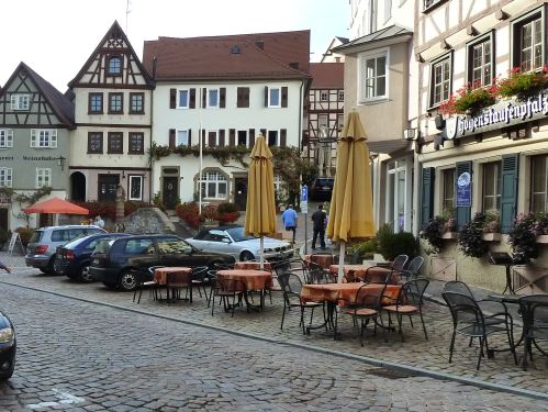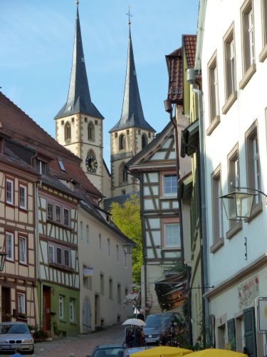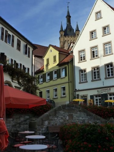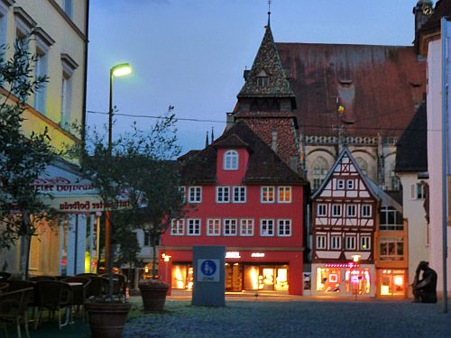 Nach dem Besuch gehts wieder zurück in die alte Stauferstadt auf den Stellplatz, und gleich zu Fuß ins Städtle. Der Weg zieht sich, mein Hunger wächst mit jedem Schritt, und ich bereue gerade, das Abendessen bei Monika ausgeschlagen zu haben. Aber dort oben im Dorf wollten wir nicht schlafen. Da war alles zu schräg.