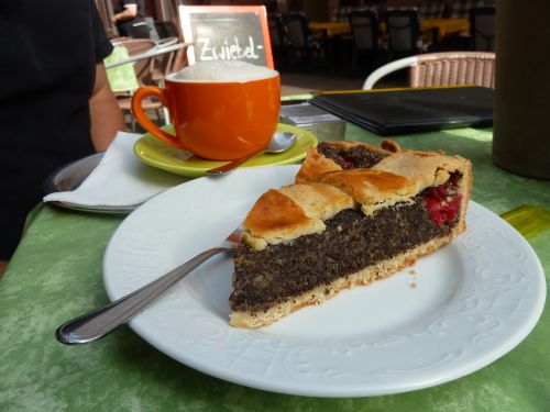und gönnen uns in einem Straßencafe Cappu und Mohnkuchen und ein lecker Stück Zwiebelkuchen hinterher.