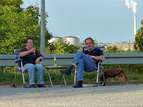 am Ende dieses Parkplatzes und beschließen doch weiterzufahren, denn hier kann man keine Stühle rausstellen, und wir wollen das herrliche Wetter des letzten Sommertages genießen.