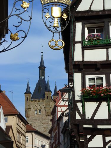 Um 13:00 fahren wir los und entscheiden uns gegen die Autobahn und fahren über Michelstadt durch den Odenwald nach Eberbach, wo wir Station machen.
