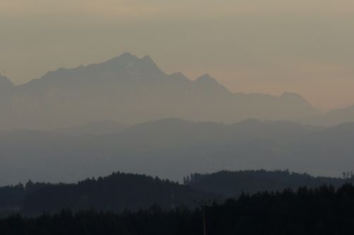 Die Feuchtigkeit des gestrigen Regens steigt auf, und wir haben einen herrlichen Blick auf die Schweizer Alpen.