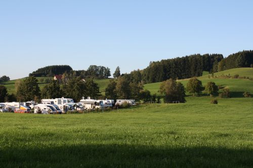 und dann fahren wir weiter nach Neuhausen ob Eck. Der Platz liegt am Ortsrand im Grünen, und gegen später kommt sogar die Sonne heraus.