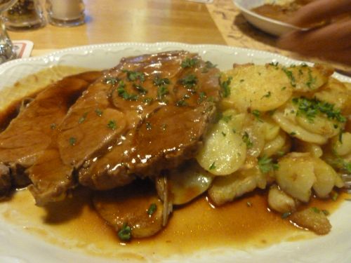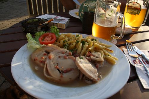 Schmegge musses. Dazu ein dunkles Zeppelin und zum Nachtisch einen Kräuterbrand. Der war superlecker.